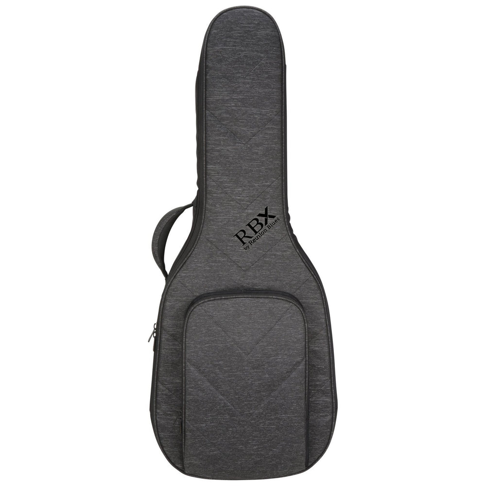 For 40 years Reunion Blues has been making the world best gig bags, and we've added a new slim and sophisticated design to our popular RBX gig bag line. RBX Oxford series gig bags represent a fusion of our passion for quality and the desire to make an affordable, lightweight, and protective gig bag perfect for musicians on the go. The Oxford features a dark grey heathered polyester exterior with a quilted chevron pattern, and a luxurious blue velvet interior. The RBX protection system features a lightweight multilayer foam surround with strategically placed impact panels, and a dense foam neck cradle and end pin rest that keep the guitar safe and secure. Padded backpacks, an integrated subway grip, and Reunion Blues signature Zero G handle make getting around town a breeze. A slim fit front pocket provides storage for small items while keeping a low profile. And best of all, the RBX Oxford series includes Reunion Blues Limited Lifetime Warranty. The Gig Bag, Reinvented.