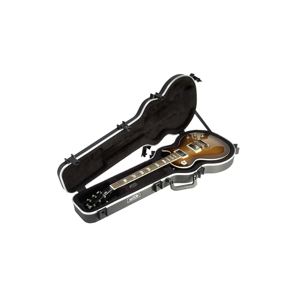 The SKB-56 Les Paul® Guitar Case is meticulously crafted to accommodate most Les Paul® guitars and similar styles, ensuring your instrument remains secure and protected. Its arch top design, combined with a custom-molded deluxe plush interior, offers a snug fit that prevents movement during transport. The inclusion of a rubber over-molded handle enhances carrying comfort, making it an ideal choice for musicians on the go.