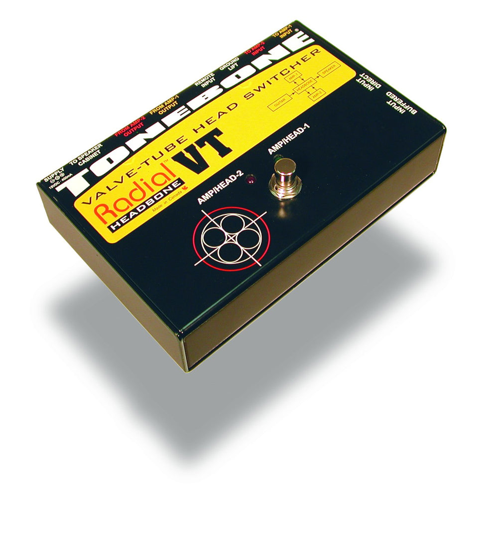 The Radial ToneBone HEADBONE VT is an innovative switching device designed for guitarists who demand versatility and top-notch tonal performance. This game-changing switcher allows you to seamlessly toggle between two different valve tube amplifier heads using a single speaker cabinet. Whether you're using your Marshall head for rhythm or your Mesa-Boogie head for soloing, the HEADBONE VT ensures unparalleled performance both on stage and in the studio. With its 100% discrete class-A circuitry, the HEADBONE VT offers exceptional audio quality, while its transformer isolated signal path eliminates any ground loops, ensuring your sound remains pristine.