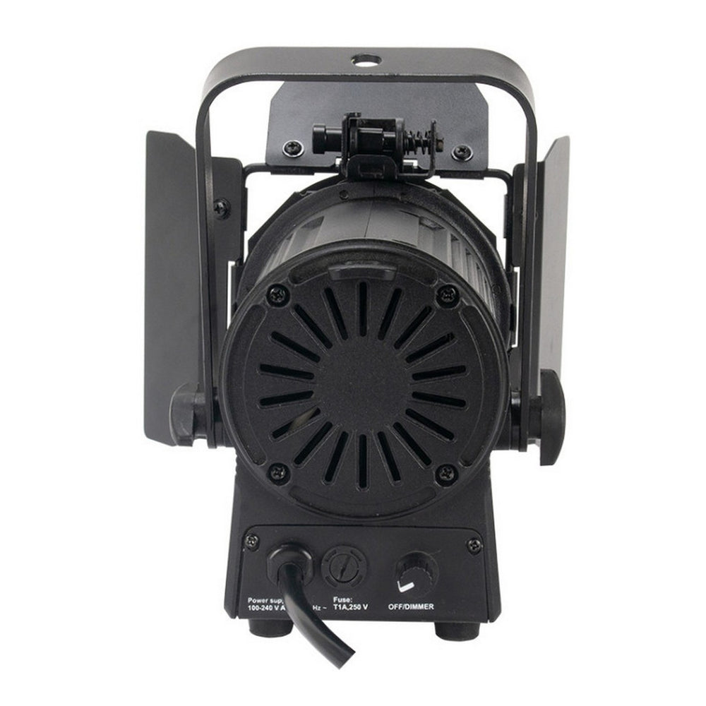 Part of the Encore stage lighting series, the Encore FR20 DTW lighting fixture is equipped with a 2-inch Fresnel lens and powered by a 17W warm white LED engine. It produces a soft-edged beam for stage, theatre and commercial use at 3000K. It comes with barn doors to adjust the beam dispersion and a manual knob to change the dimming from 100% to 0% with a dim to warm feature. It is also Triac dimmable - compatible with ADJ dimmer packs or Lutron and Leviton wall dimmers.