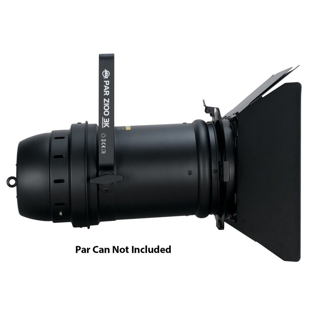 The PAR64-BD is a black metal barn door assembly for ADJ's Par Z100 Series of LED Pars. They help manually shape where the lighting designer wants the light to shine on depending on how much they open or close the barn door metal leaves. This is an accessory for the ADJ PAR Z100 3K, PAR Z100 5K and PAR Z120 RGBW, or traditional PAR 64 halogen cans. The barn door is attached to the fixture by being inserted into the gel frame holder clip.