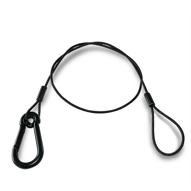 The GS-30SC is a 30-inch black safety cable designed for securing mounted equipment in staging and rigging environments. It serves as a secondary safety attachment for fixtures or components.