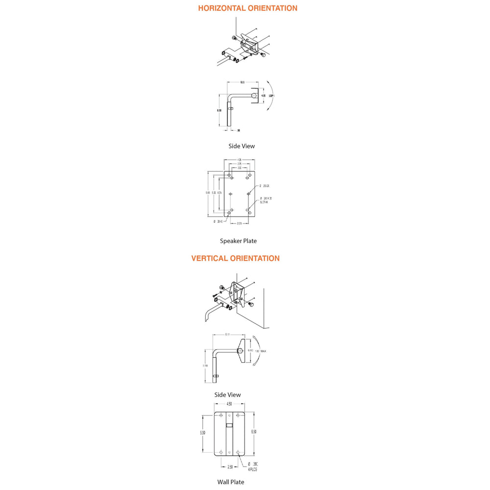 The MultiMount MM-022-BT Indoor Speaker Wall Mount orients speakers horizontally or vertically depending on how it is assembled using standard speaker mounting hole patterns.