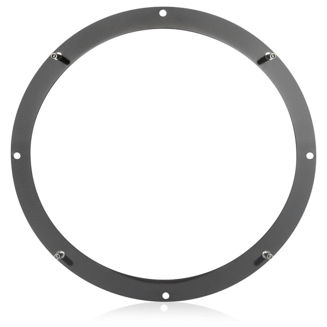 The AtlasIED 75‑8 Mounting Ring is designed to securely install screw‑mount baffles with compatible 8″ (203 mm) loudspeakers where full enclosures are unnecessary. Crafted from 20‑gauge cold‑rolled steel (CRS) and finished in textured black epoxy, this mounting ring offers robust support and a clean, discreet appearance ideal for drywall, plaster, stud, or retrofit ceiling applications.