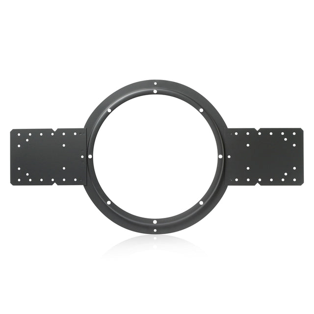 The AtlasIED 76-8E2 is a versatile 8-inch mounting ring designed for new construction drywall applications. It facilitates the installation of screw-mount baffles for 8" loudspeakers and 95 series enclosures, ensuring secure and reliable ceiling speaker installations. Constructed from 20-gauge cold-rolled steel (CRS) with a textured black epoxy finish, this mounting ring is built to withstand various ceiling constructions, including drywall, plaster, conventional, stud ceiling, and retrofit applications.