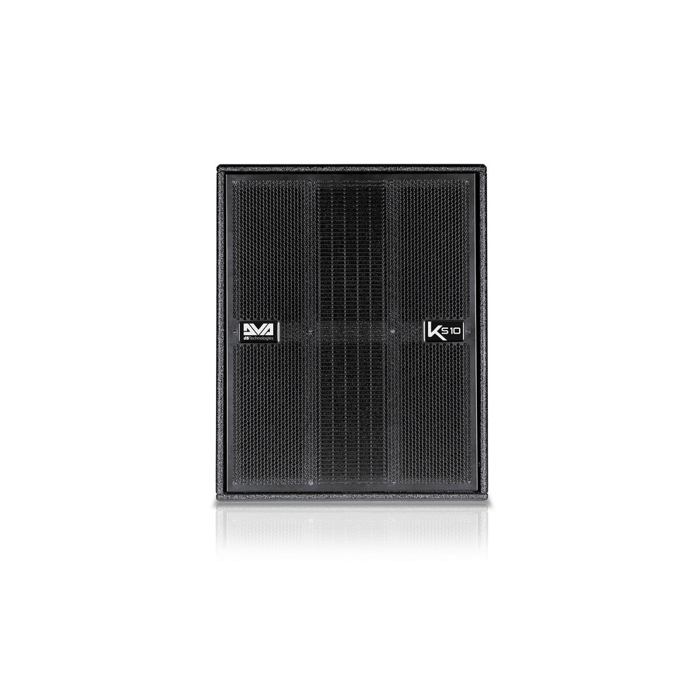 The semi horn loaded subwoofer DVA KS10 is equipped with a single 18” woofer driven by a Class-D Digipro G3 power amp delivering 2000W Peak and reaching 134 dB SPL. Maximum versatility is granted by a stereo input/output balanced pre-amp. Crucially, KS10 can be used as a compact PA system (together with DVA K5 on a speaker pole) or ground stacked, but can also be flown thanks to the optionally available flyware. A dedicated encoder allows to apply up to 4.5 ms of delay, with 0.5 ms speps. A switch allows to invert the phase by 180 Degrees as well as changing the LPF from 90 Hz to 120 Hz.