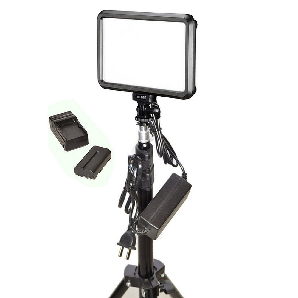 Illuminate your next interview with the Specter Slim LED Single-Light Kit from Bescor. This kit includes one Specter Slim LED light and the same number of AC adapters and light stands. It also includes 1 NPF battery and charger for untethered power. The 7 x 5 x 1” light has a variable color temperature of 3200-5600K and is also dimmable. The light also features a built-in glare free soft white diffuser and an LCD panel on the back that displays current dim level and color temperature. Power is provided via an AC adapter or NP-F battery pack.