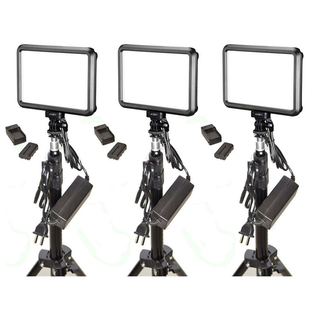 Illuminate your next interview with the Specter Slim LED 3-Light Kit from Bescor. This kit includes three Specter Slim LED lights and the same number of AC adapters, NP-F batteries, and light stands. The 7 x 5 x 1” light has a variable color temperature of 3200-5600K and is also dimmable. The light also features a built-in soft white glare free diffuser and an LCD panel on the back that displays current dim level and color temperature. Power is provided via the included AC adapter or NP-F battery pack.
