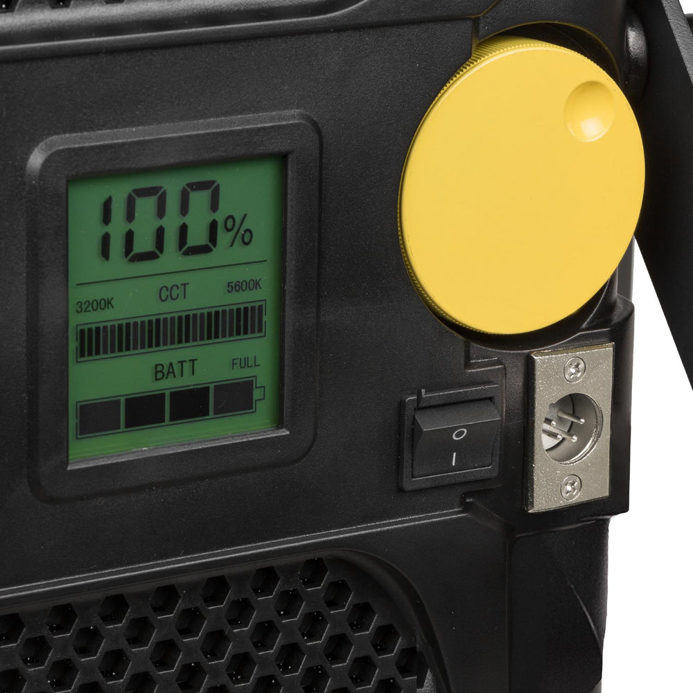 The LB10 is a soft panel light that offers beautiful, soft wrapping light thanks to its high CRI LED chips. With bi-color adjustability ranging from 3200K-5600K, the LB10 works well with any lighting production. It is equivalent to an 850-watt incandescent soft light, and its brightness is consistent across all color temperatures. The 110-degree wide beam angle can easily light a large area by itself, and the 30-degree yoke allows for easy configuration and attachment to any stand. On the back, the large control knob lets you adjust brightness and color temperature with just a few simple clicks. The LED readout provides precise measurements for reference, and battery flexibility is guaranteed with AB and V-mount pro battery plates included.