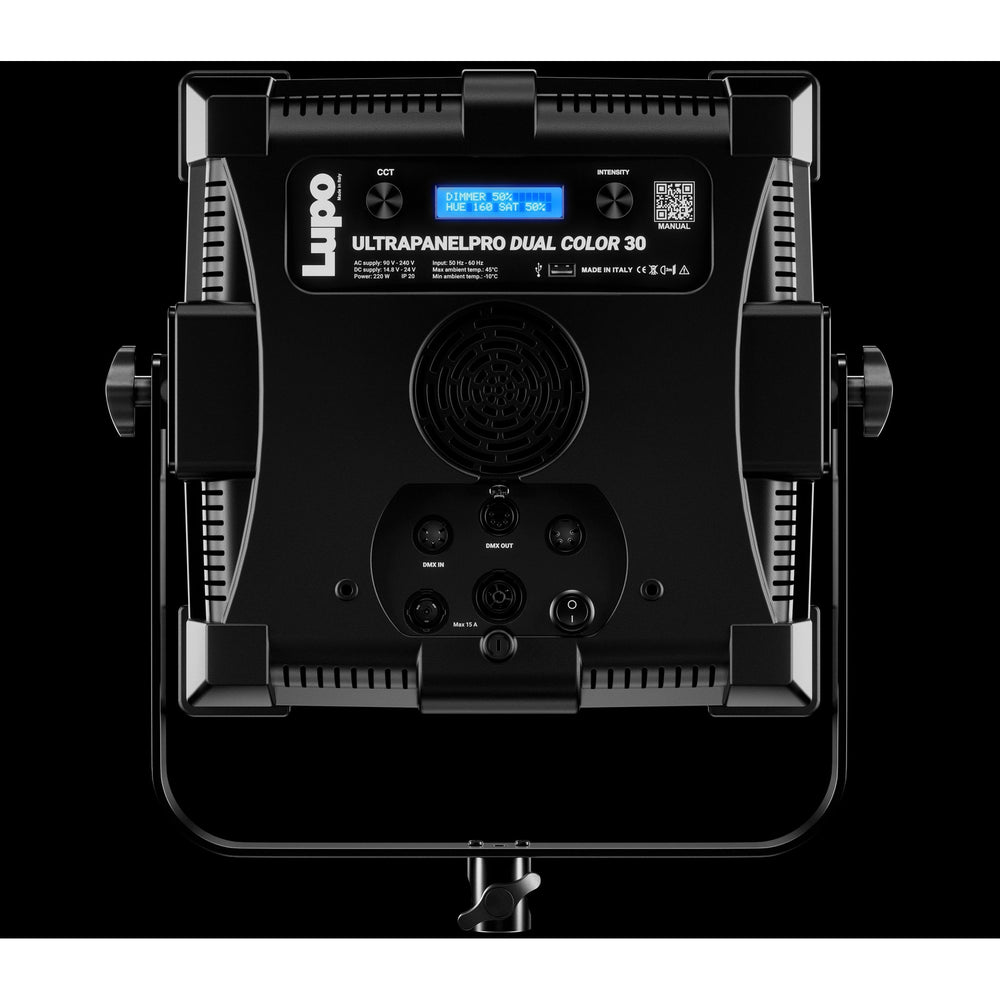 Introducing the Lupo UltrapanelPRO Dual Color Hard 30 LED Light, the most powerful 1x1 LED panel on the market, boasting an impressive 72,000 Lux at 1m. This deluxe version of the Superpanel Dual Color Hard 30 offers doubles the light output while maintaining all the technical and optical features of its predecessor. With top-notch CRI and TLCI ratings, AC/DC operation, and compatibility with 14V and 160Wh batteries, this panel also features DMX, RDM, and Bluetooth Long Range control. The Ultrapanel is a versatile light source with exceptional professional performance, perfect for film sets and TV studios requiring high-quality lighting. Achieving its incredible light output through cutting-edge LEDs, this panel offers a 40° light beam angle like the Superpanel Hard models.