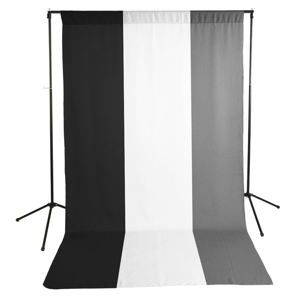 Savage’s Black, White & Gray Economy Backdrop Kit is the perfect setup for small studio space! This economical kit comes complete with three 5’ x 9’ (1.52m x 2.74m) polyester backgrounds, a lightweight background stand, and a complimentary carry bag. Backdrops are made from a wrinkle-resistant matte material, including a black backdrop that doesn’t gray out even under direct light, a bright white backdrop for true, bright colors, and a charcoal gray backdrop with a matte finish that delivers a rich yet neutral background.
