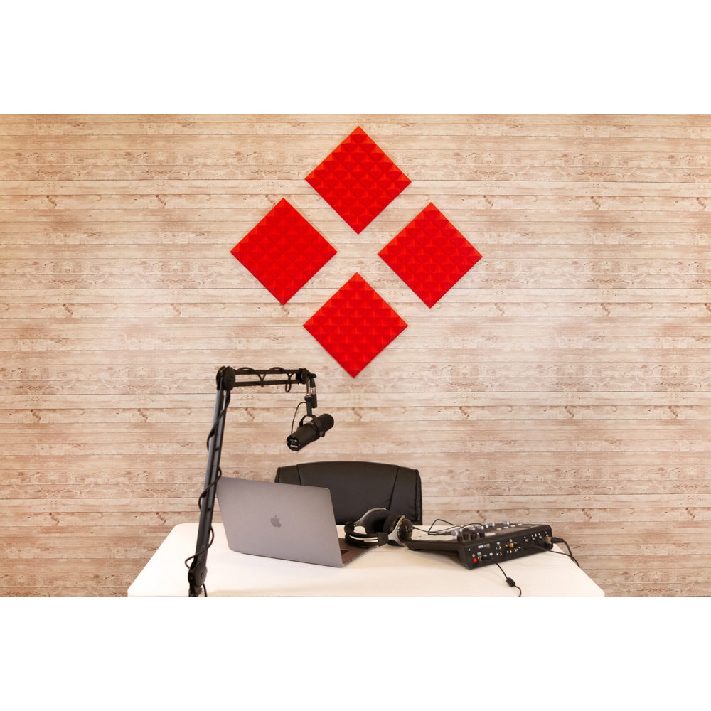 - Four (4) Pack of 2-Thick Acoustic Foam Pyramid Panels 12x12 - Red Color