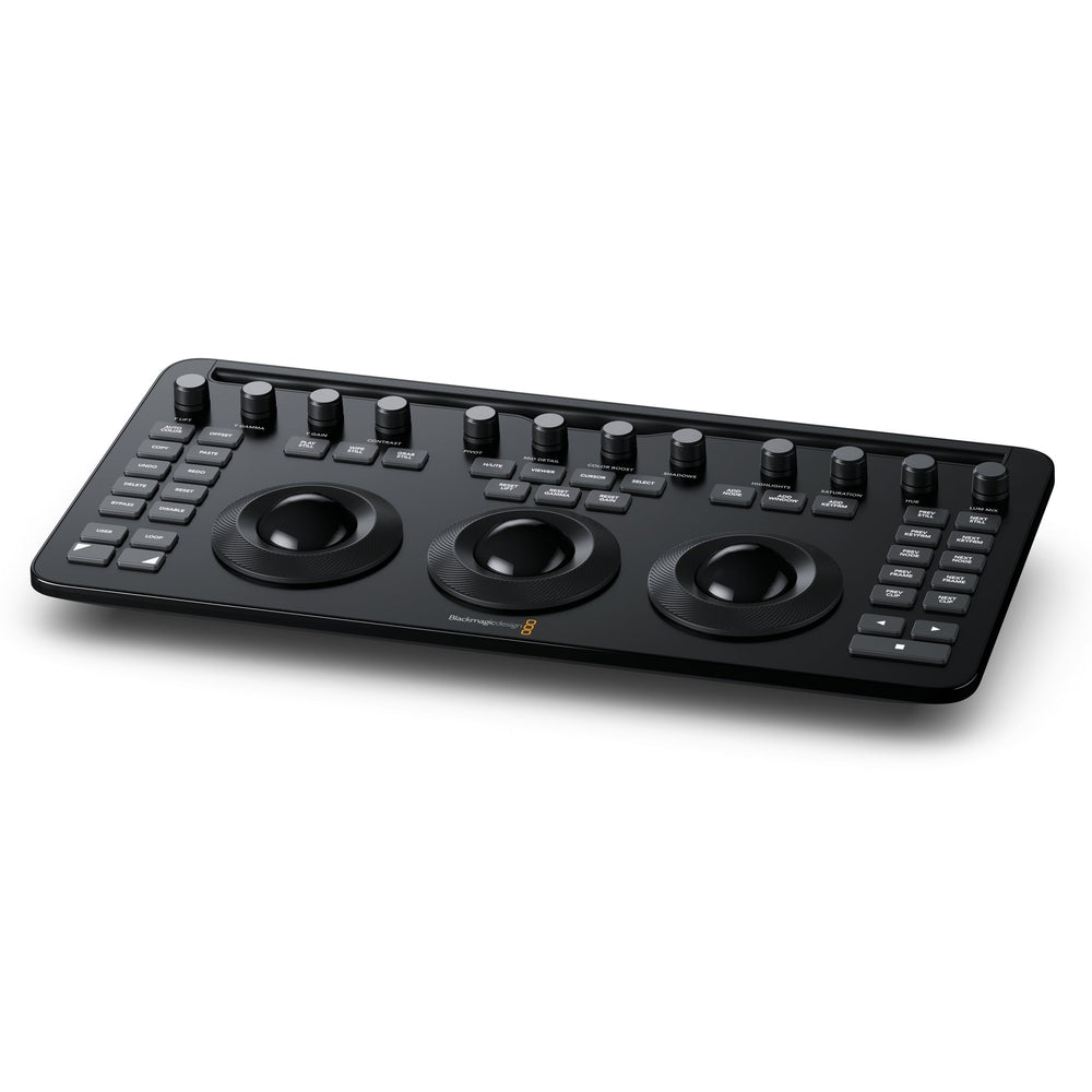 Elevate your video editing game with the Blackmagic Design DaVinci Resolve Micro Color Panel. Tailored for professional filmmakers and video editors, this compact and ergonomic controller brings precision color grading to your fingertips. Seamlessly integrating with DaVinci Resolve, it provides a user-friendly interface that enhances workflow and fits effortlessly into any editing setup. The Micro Color Panel stands out with its three high-resolution trackballs, enabling unparalleled color accuracy and nuanced adjustments to achieve the perfect look for every frame.