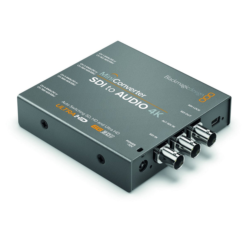 The Blackmagic Mini Converter SDI to Audio 4K is a highly versatile and essential tool for professional video production environments. This powerful mini converter is designed to de-embed 4 channels of analog audio or 8 channels of AES/EBU digital audio from any SDI video connection, providing unmatched flexibility for accessing audio from any SDI source. Whether you need to output the audio to a variety of equipment such as audio mixers, broadcast decks, or audio monitors, this mini converter ensures seamless integration and superior performance.