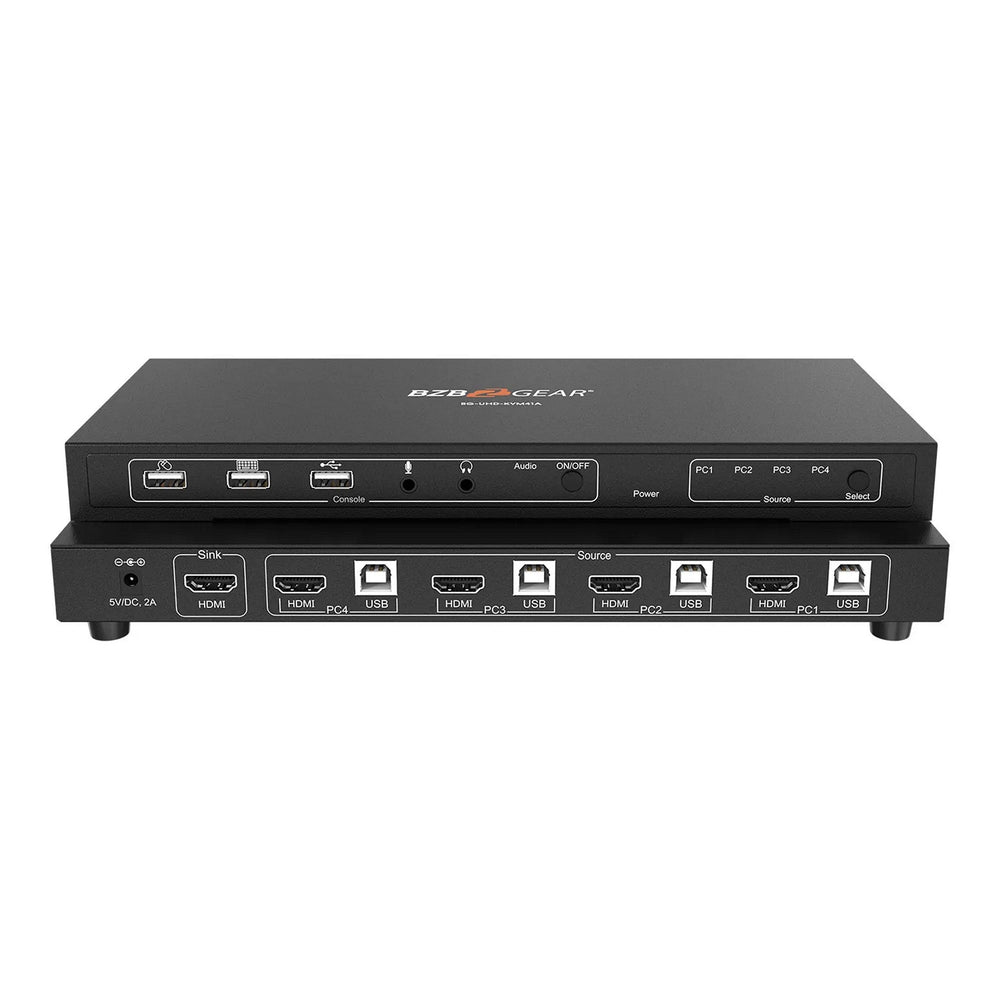 BZBGEAR BG-UHD-KVM41A 4x1 4K UHD KVM Switcher with USB2.0 Ports for Peripherals and Audio Support