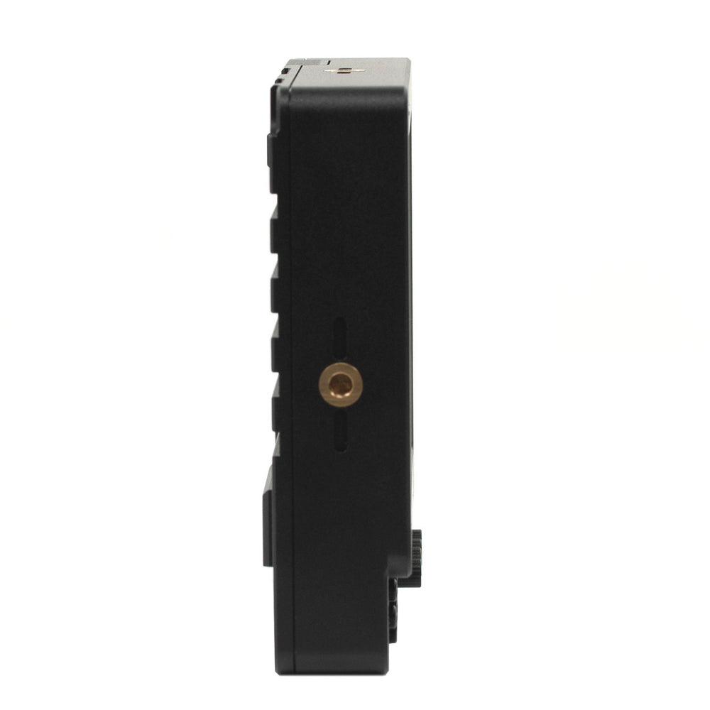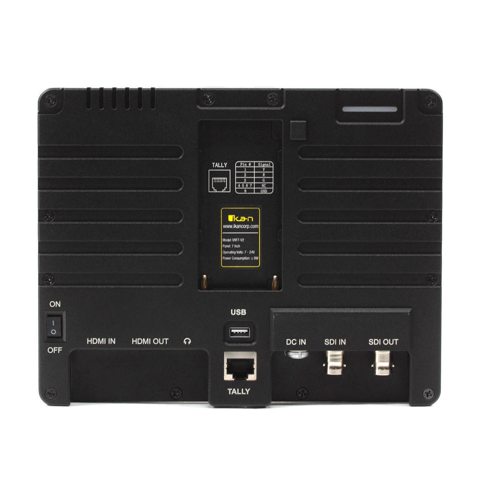 Equipped with a tally connector and three tally lights placed strategically on the front and back, the monitor seamlessly integrates into multi-camera production setups. Easily access the tally connector pin key by removing the interchangeable battery plate.