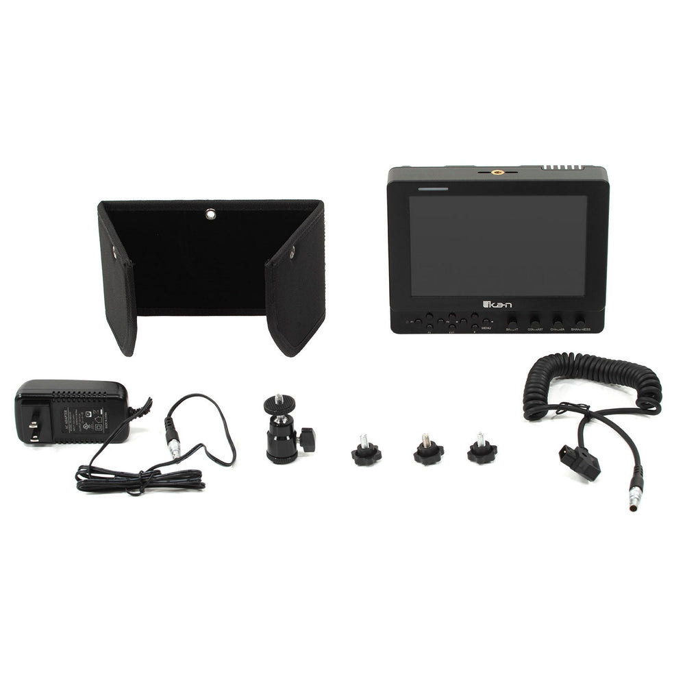 The Ikan VXF7-HB-DK 7-Inch High Bright 4K HDMI/3G-SDI On-Camera Tally Field Monitor Deluxe Kit boasts an impressive 2000 nits high-bright, full HD 1920 x 1200 IPS LCD panel, loaded with features such as waveforms, peaking, false color, zooming, pixel-to-pixel mapping, and histogram levels. This top-notch quality ensures seamless capture of desired shots, making it a perfect tool for any production setting.