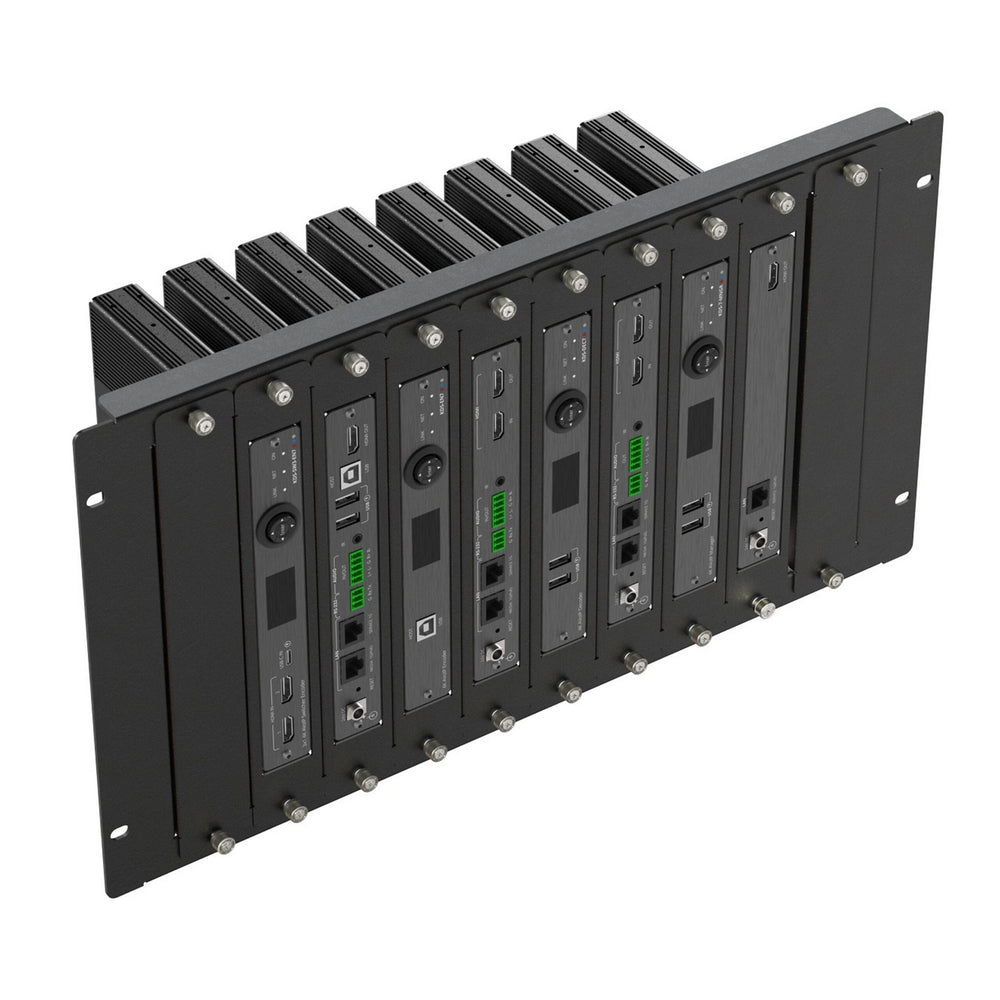 RK-10MT is a 19-inch rack mount for up to 8 Kramer KDS-7 devices into a 6U rack space.