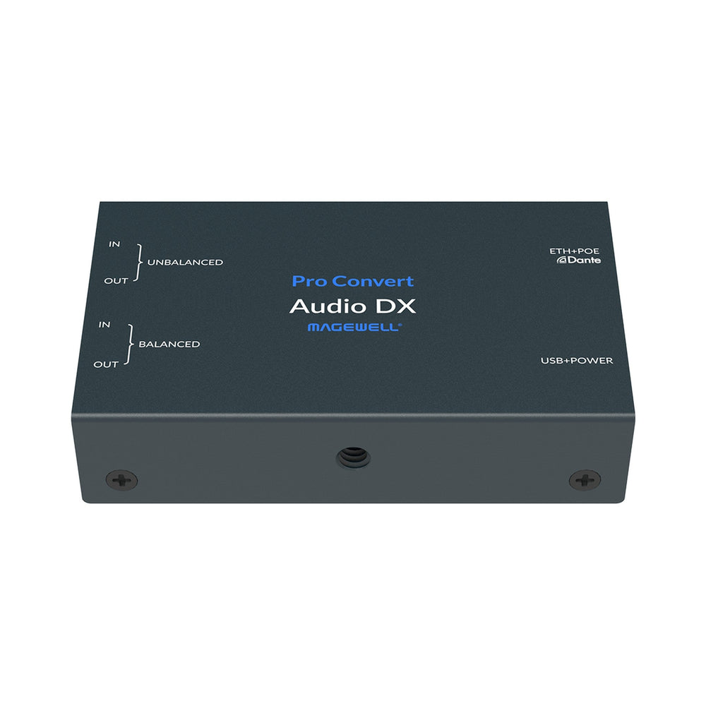 The Magewell Pro Convert Audio DX is a cutting-edge multi-format IP audio converter and capture device designed for professional audio applications. With its Dante-enabled functionality, this versatile device seamlessly integrates into modern audio-over-IP workflows, offering a robust bridge between analog audio, software, and IP standards, including Dante®, NDI®, SRT, and more. Whether you're working in a live event setting, broadcasting studio, or any environment that requires reliable audio conversion, the Pro Convert Audio DX stands out as a top-tier solution.