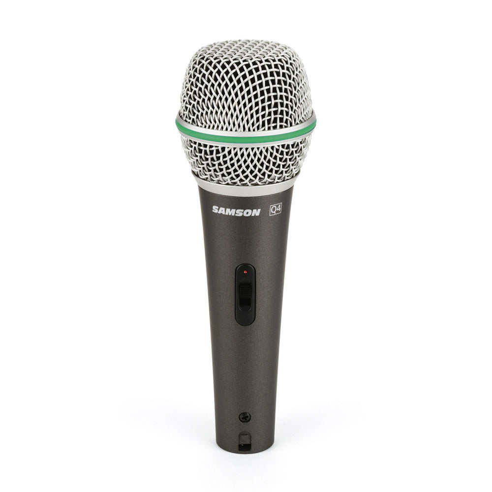 Samson's Q4 Dynamic Microphone brings a high level of accuracy and audio performance to a variety of live and studio applications such as miking vocals, presentations, instruments and more. Designed for accuracy, as well as durability, the Q4 is a solid performer no matter the environment. The heart of the Q4's performance stems from the wide dynamic range produced by its neodymium dynamic mic element. The mic also features a supercardioid pickup pattern with excellent off-axis rejection. This enables the Q4 to pick up all the nuances of any performance with maximum volume and clarity, while reducing feedback and unwanted signals not originating in front of the mic. The Q4 also offers a smooth frequency response and low frequency roll-off for providing balanced audio reproduction no matter how close a sound source gets to the capsule.