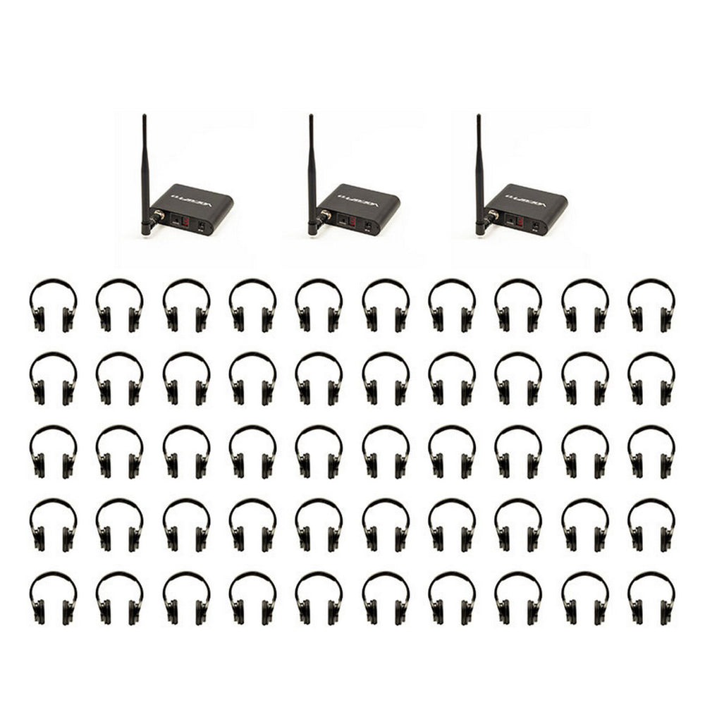 VocoPro Silent Disco 350 Package with 3 Transmitters and 50 Wireless LED Headphones