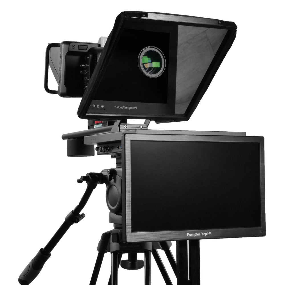 Prompter Pal Pro - Talent Monitor Teleprompter features a 12” 3G-SDI | HDMI Pro 1000 NIT High Bright Monitor alongside a 15.6” 3G-SDI | HDMI Talent Monitor.