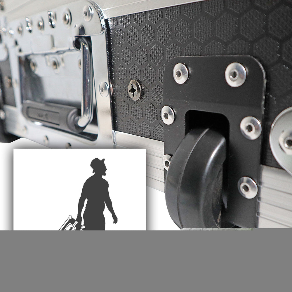 Strict manufacturing specifications and tolerances are achieved using CNC technology, upholding the quality standards ProX has been known for since 1984. It is important to note that this case does not include the equipment shown in images; they are for reference purposes only. Safety guidelines recommend not transporting gear on the sliding shelf and to exercise caution by ensuring the shelf is fully extended before removal to avoid accidents or damage to equipment.