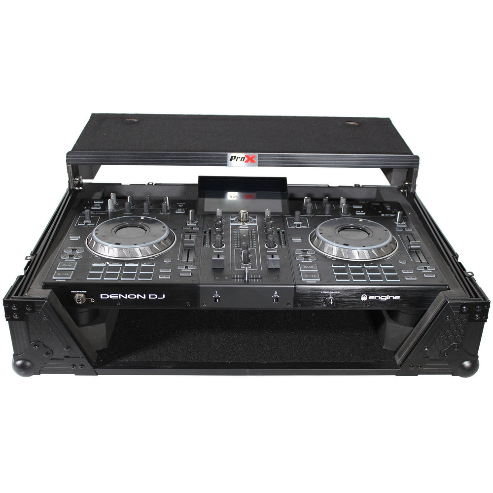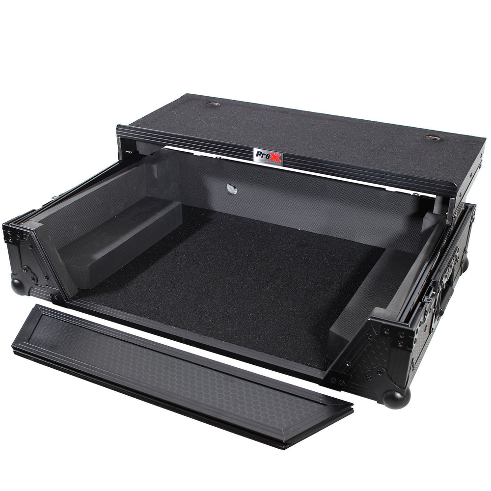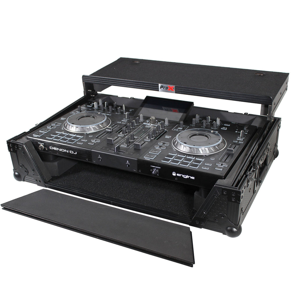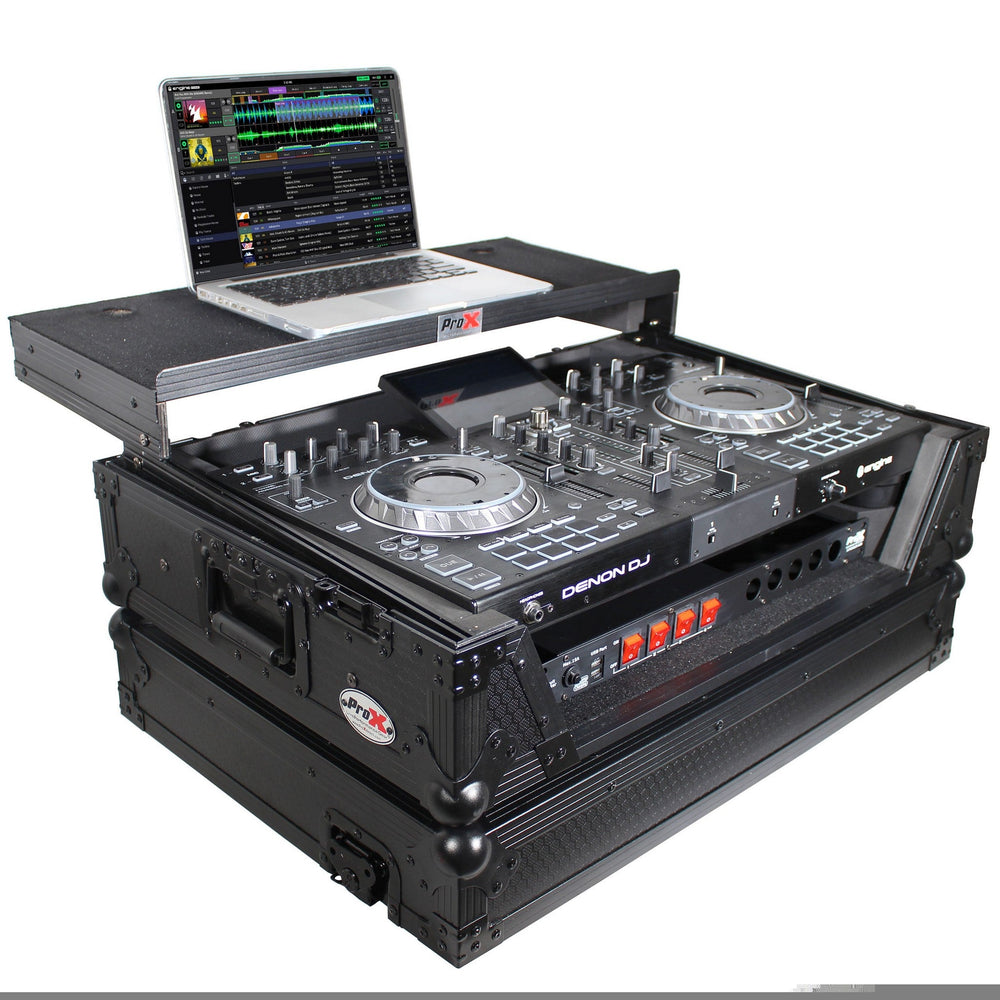 The ProX XS-PRIME2 Case for Denon PRIME 2 DJ Controller with Laptop Shelf offers reliable protection for your standalone DJ system, featuring a convenient Removable Sliding Laptop Shelf atop and a 1U Rackspace below the device. Crafted from sturdy 3/8" Series Plywood with reinforced steel ball corners, this case is designed for durability. It boasts recessed steel padded handles and latches for secure handling. The back and bottom compartments provide ample space for cables and small accessories, while a removable front panel allows easy access to front input jacks and the 1U Rackspace beneath (XS-RSS1U Brackets Not Included).