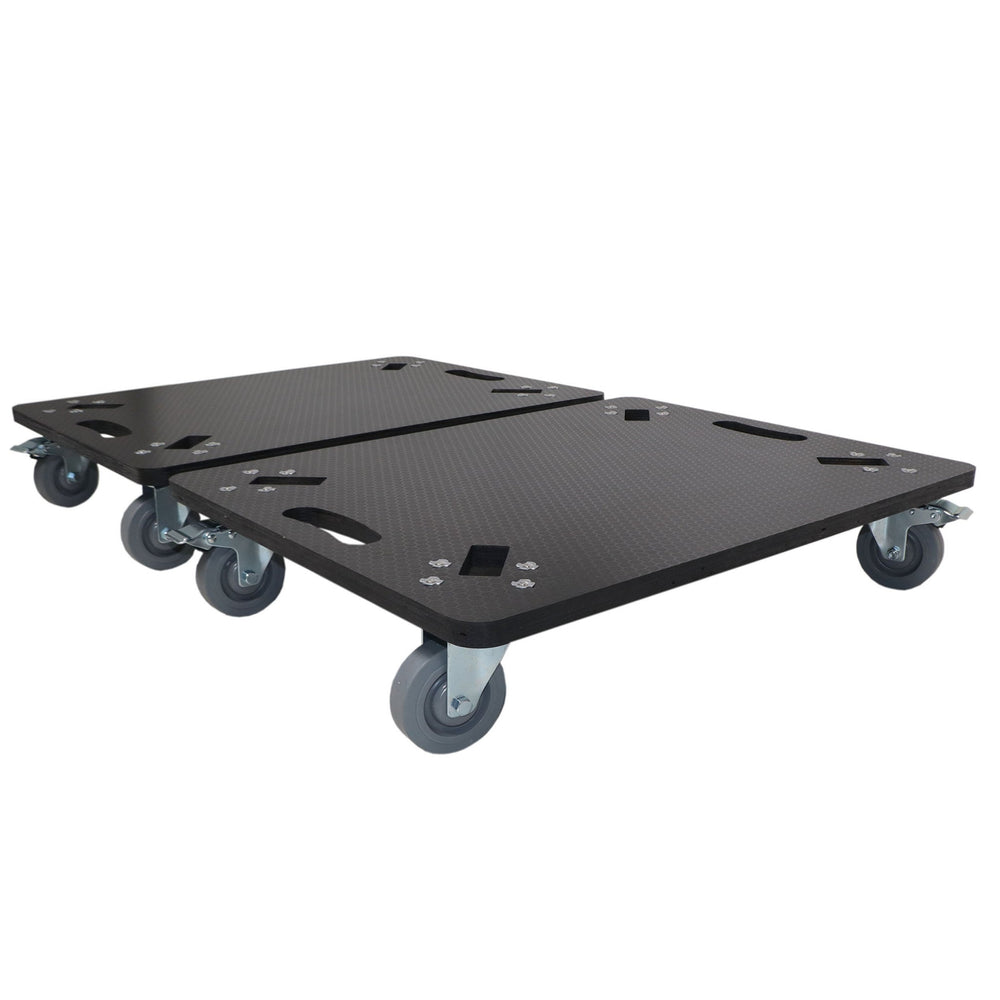The ProX XS-QUADROLLERX2 is a professional-grade set of two caster boards engineered specifically for transporting heavy audio-visual equipment with ease and reliability. Each board features robust 7/8-inch Grade A plywood construction and four 4-inch industrial-grade swivel caster wheels (two with locking mechanisms) capable of supporting up to 600 pounds evenly distributed. The intelligent design includes convenient carrying handles for easy transport when not in use and a stackable format for efficient storage, making these caster boards an essential solution for mobile DJs, live sound engineers, and event production professionals.
