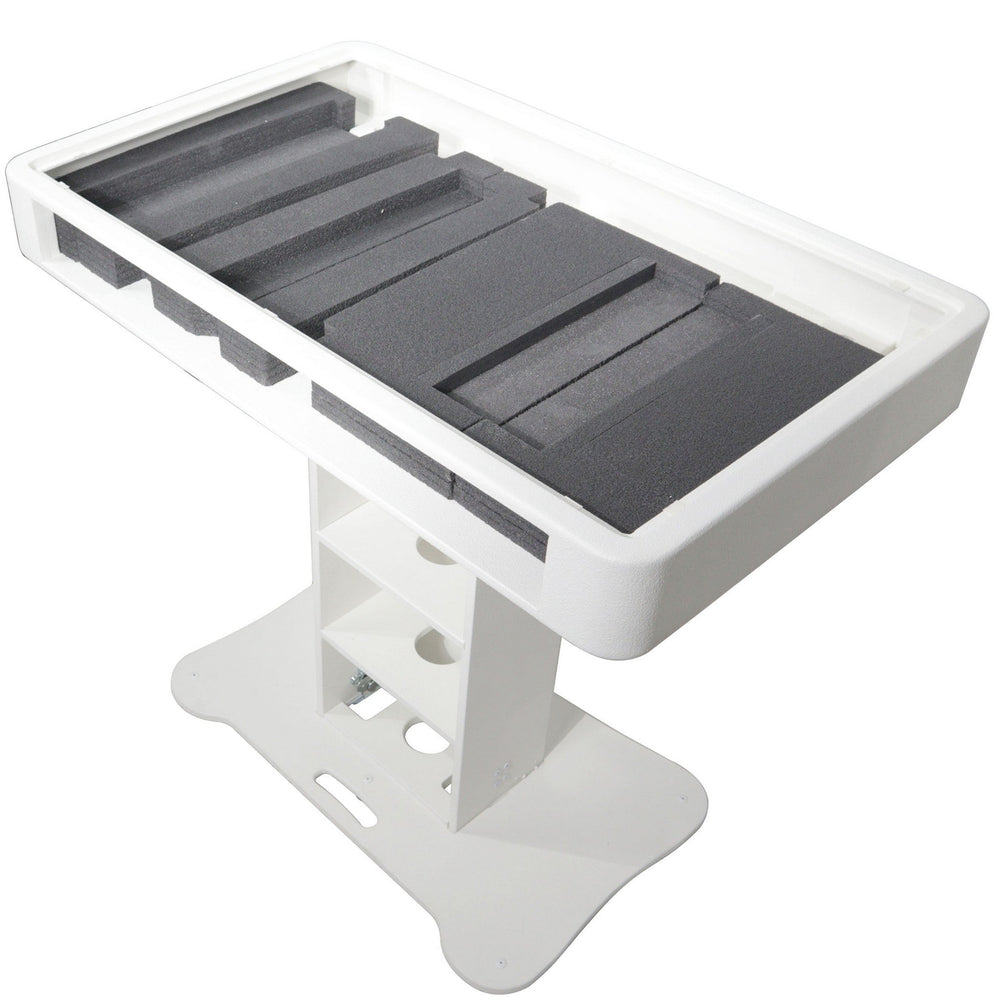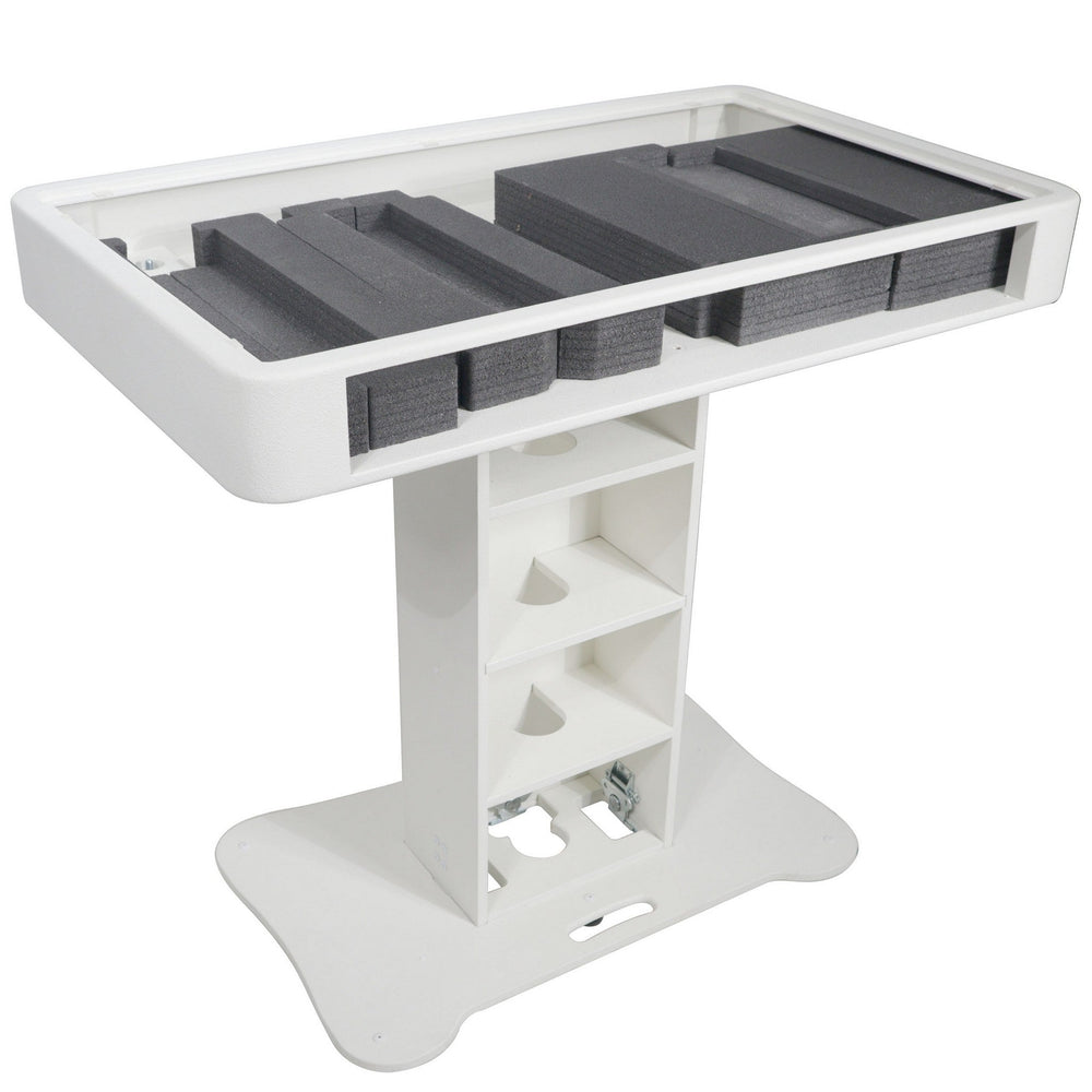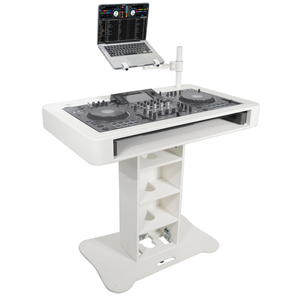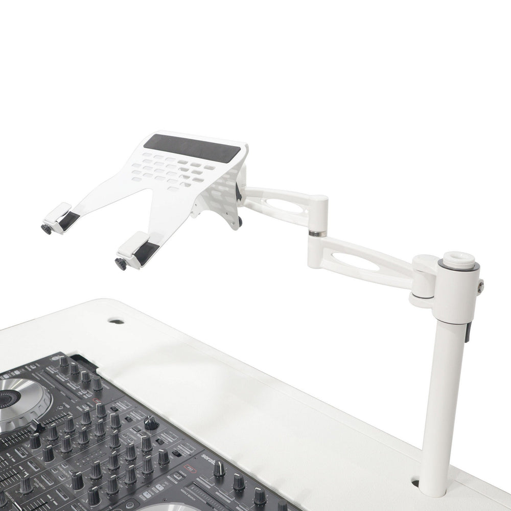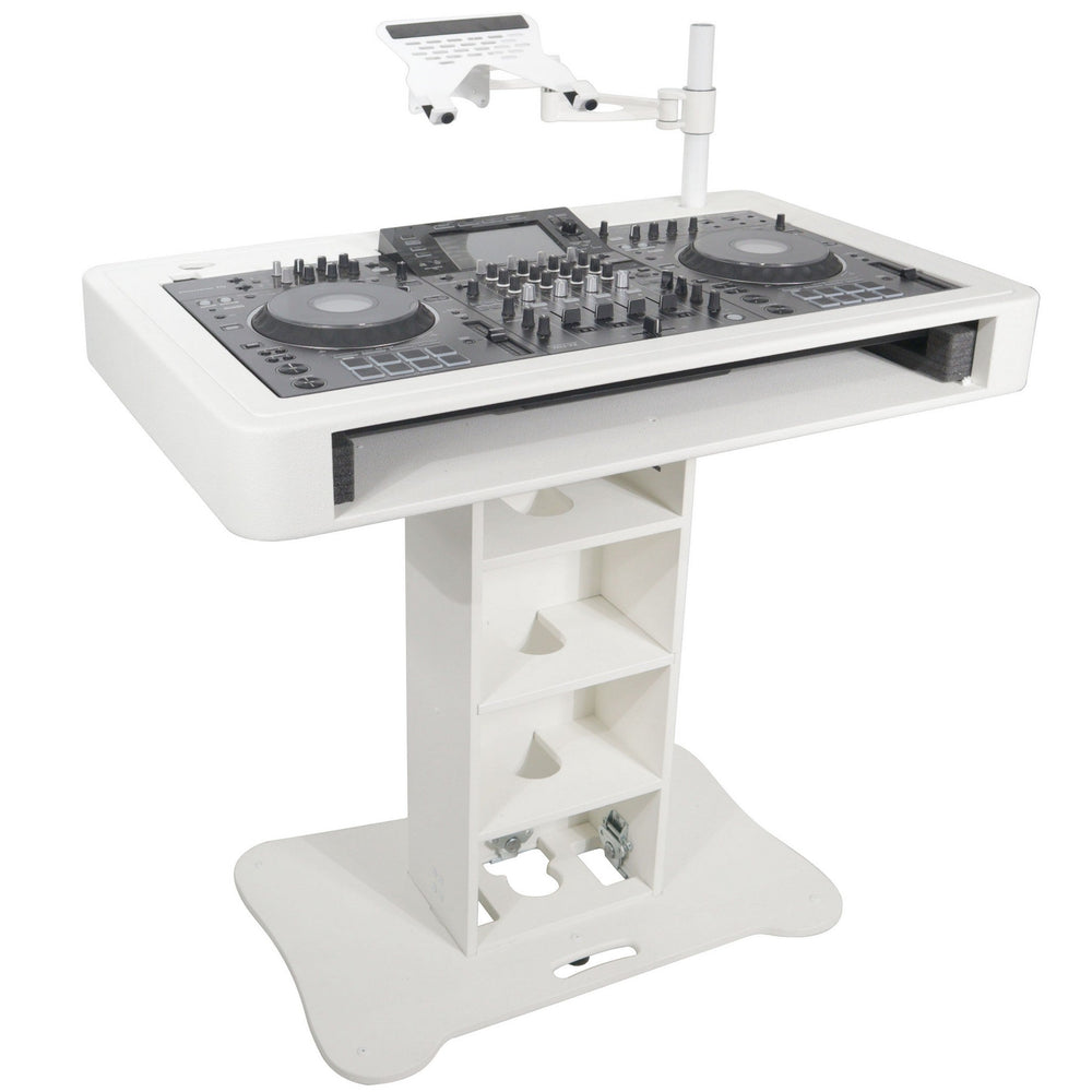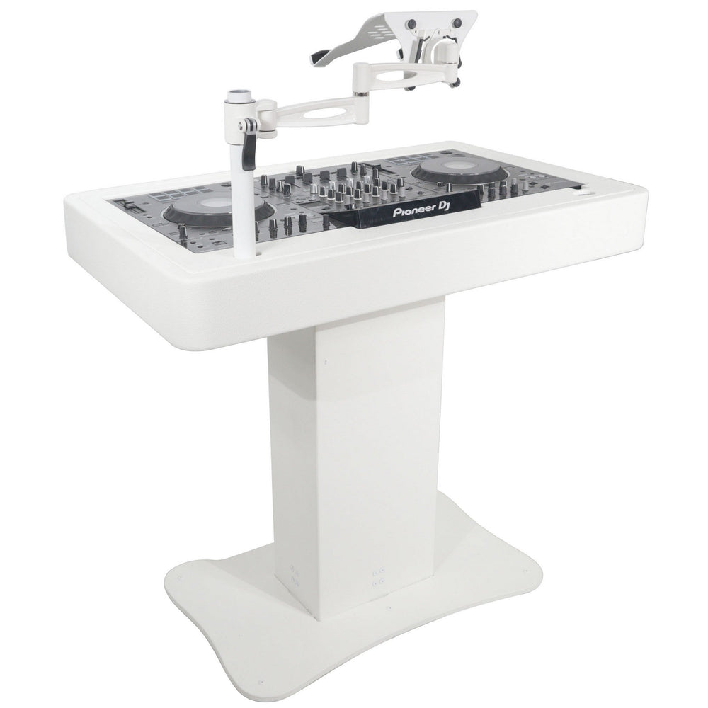 This premium DJ podium is all about effortless setup and breakdown. It features a unique snap-together mechanism using steel butterfly latches, eliminating the need for any tools. The ProX Control Tower Podium not only supports your DJ equipment securely with high-density foam padding but also enhances your workspace with a sophisticated White/Black Warnex textured paint finish. The adjustable boom arm holding a laptop tray allows for customizable positioning, ensuring every DJ can find their perfect ergonomic fit. Whether you are performing at a wedding, nightclub, bar, or recording studio, this podium exudes professionalism and style.
