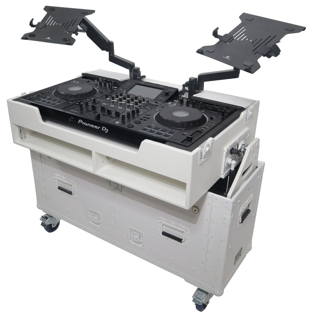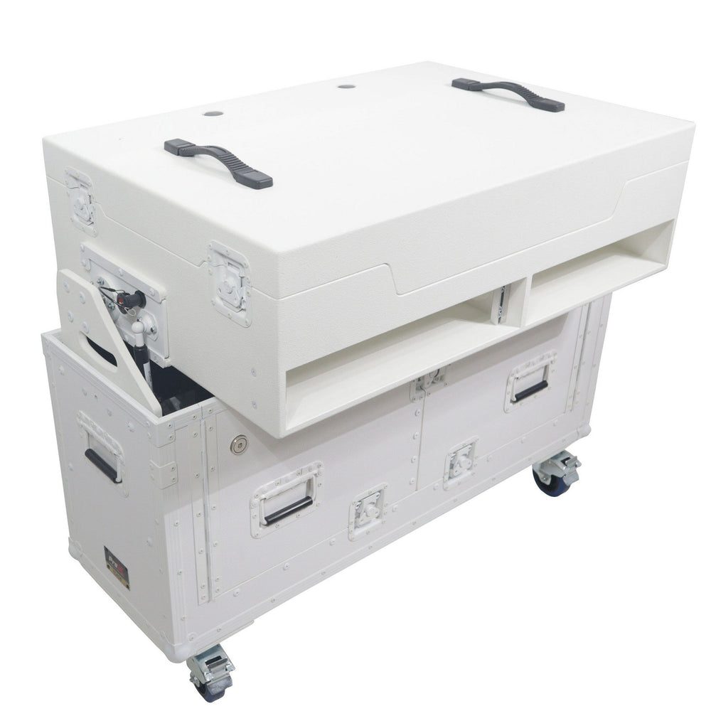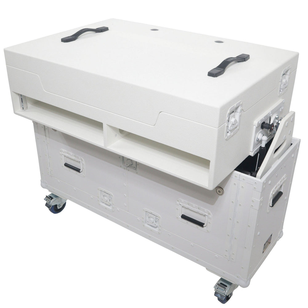 ProX has meticulously constructed this road-ready case in North America using premium materials, including 1/2β and 3/8β plywood, ensuring durability and longevity. The case features ProX's signature Honeycomb Digital surface-protected laminate, which guards against minor scuffs and scratches. Thanks to its gas-powered rotational mechanism, you can elevate the console with minimal effort, making heavy lifting a thing of the past. This product is perfectly suited for any DJ looking to streamline their setup process while maintaining a professional and sturdy setup during performances.