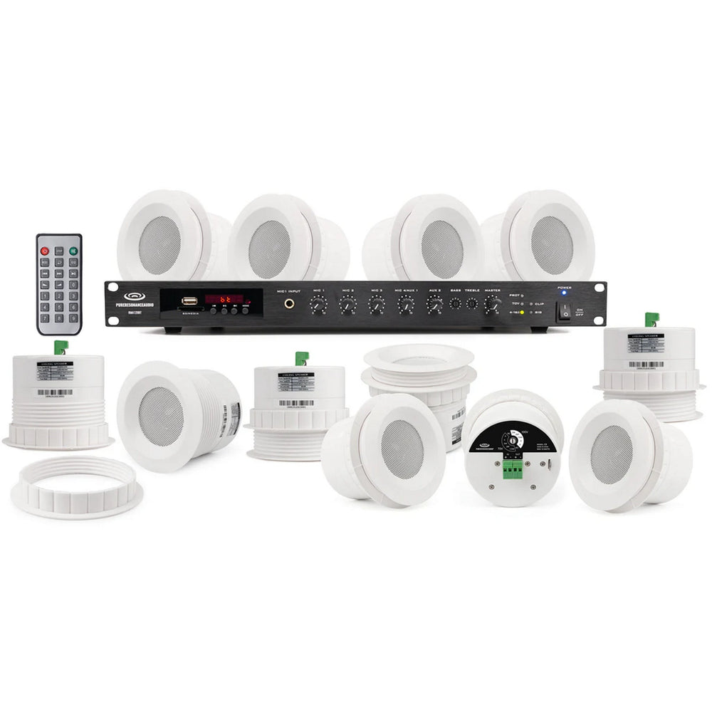 Pure Resonance Audio Business Music System with (12)C3 Ceiling Speakers and RMA120BT Rack Mount Bluetooth Mixer Amplifier