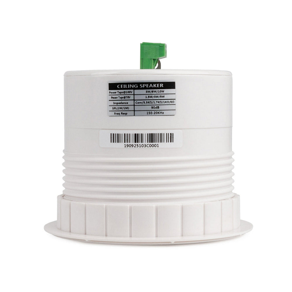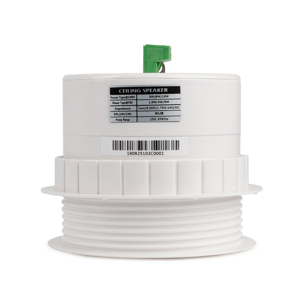 Engineered for efficiency, the C3 features a built-in 70V/100V transformer (with 8Ω bypass) and selectable power taps (1.5W / 3W / 5W @ 70V or 3W / 6W / 10W @ 100V). Its conical dispersion and broad coverage make it ideal for consistent audio performance across facilities like retail spaces, offices, cafes, and hospitality areas.