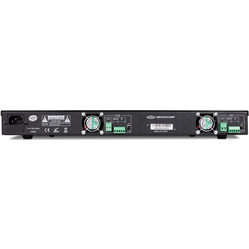 The Pure Resonance Audio DA2500 is a dual channel 500 watt Class D amplifier designed for commercial and professional audio systems. With the ability to operate each channel in either 70 volt or 4 to 16 ohm mode, this amplifier provides unmatched flexibility for distributed audio installations or low impedance speaker systems. It delivers clear, efficient, and reliable power in a compact rackmount form.
