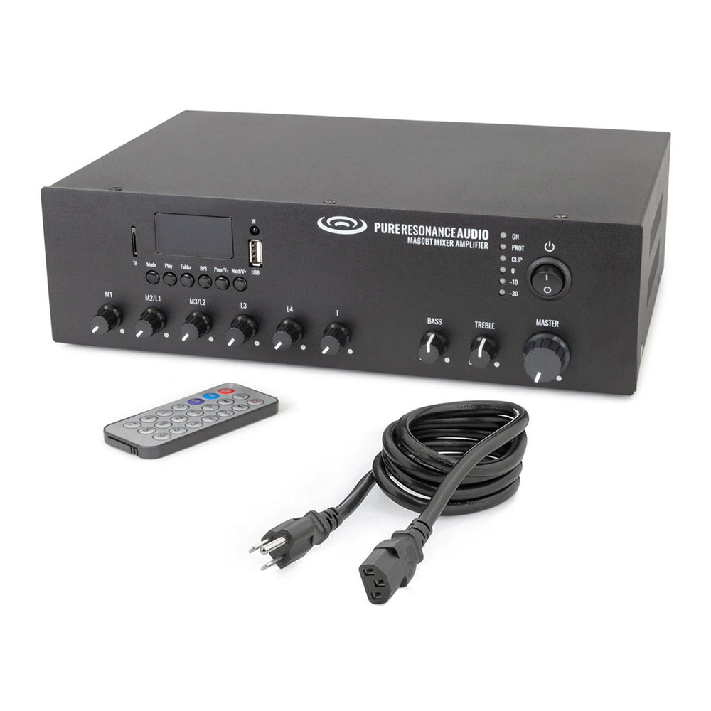 The Pure Resonance Audio MA60BT is a powerful and efficient 7 channel commercial mixer amplifier designed for business, education, hospitality, and retail applications. Delivering 60 watts of output power, it supports multiple input sources including microphones, Bluetooth devices, USB, TF card, and FM radio for complete audio flexibility.