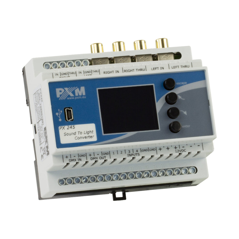 - Advanced PX245, a unique Audio to DMX-512 protocol converter under the PXM Company's offerings.