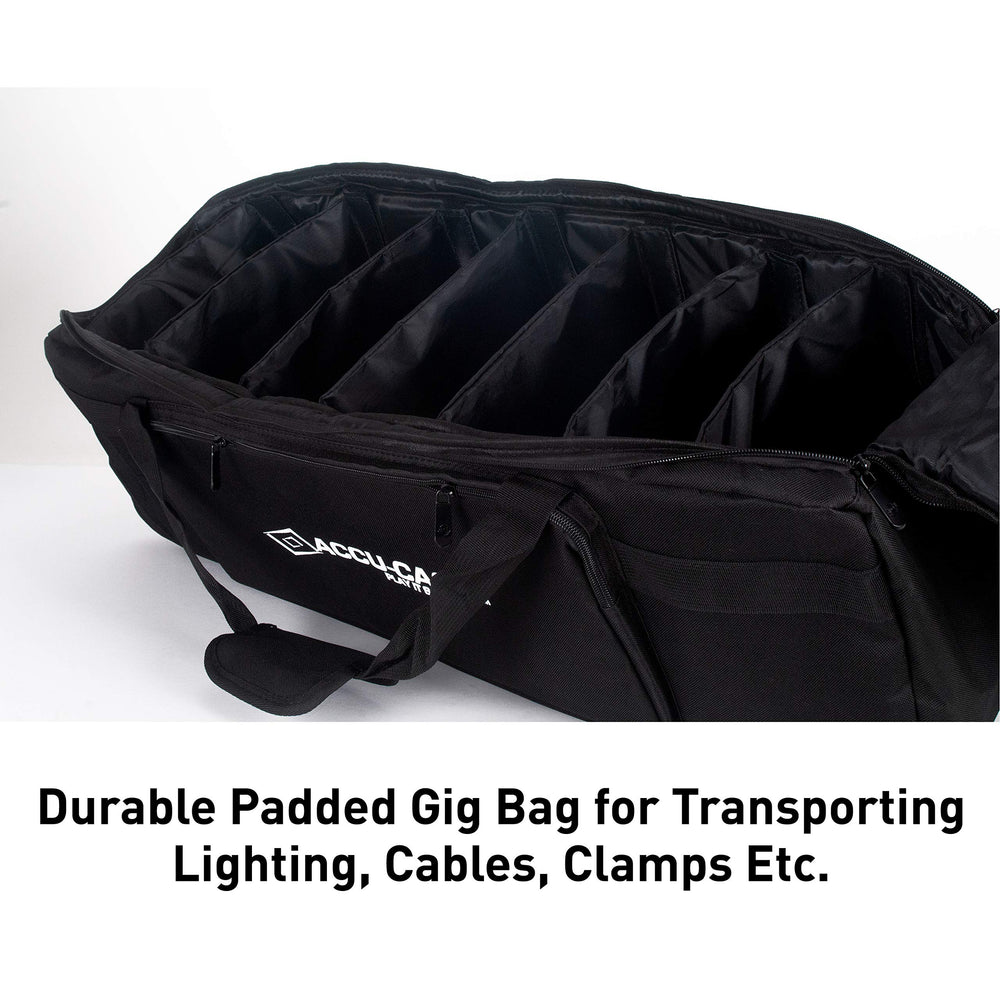 - Durable padded Gig Bag for transporting lighting, cables, clamps etc.