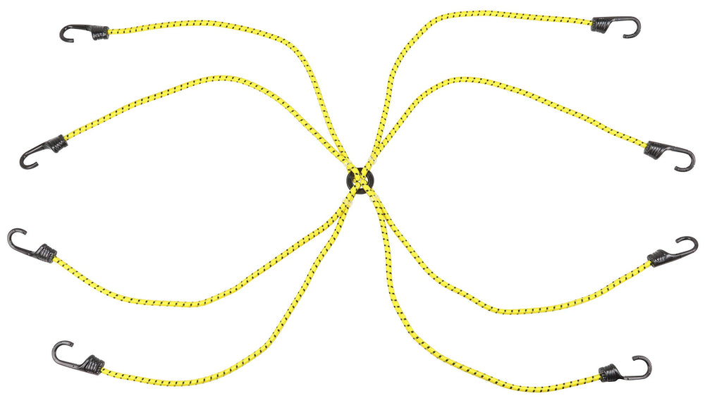 Have you ever wished you had extra armsto help with moving items that normal two-armed humans would find difficult, even with a cart? Cinch down those awkward loads with the new Rock N Roller Multi-cart Cargo Spider! Available in two sizes, the Cargo Spider features 4 bungee cords looped around a center hub, allowing you to quickly strap down large or uneven loads with 8 rugged hooks. The small version features a single hub, and the large version features two hubs with a bungie extension for those oversized loads.