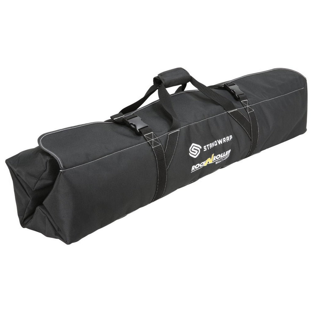 The Rock N Roller StandWrap is a premium hardware hauler. The unique roll-up bag features four pockets, each with a triangular cross-section and a zipper along the ridge. The 600D polyester material throughout the bag is durable and abrasion resistant. The triangular profile is perfect for tripod stands, including drum hardware, microphone stands, speaker stands, lighting equipment, and more! A Velcro flap keeps items from sliding out. The pockets nest neatly to form a tight, well-fitting bundle. The entire package comes together with two large buckles, and a padded neoprene handle wrap makes light work of heavy loads.