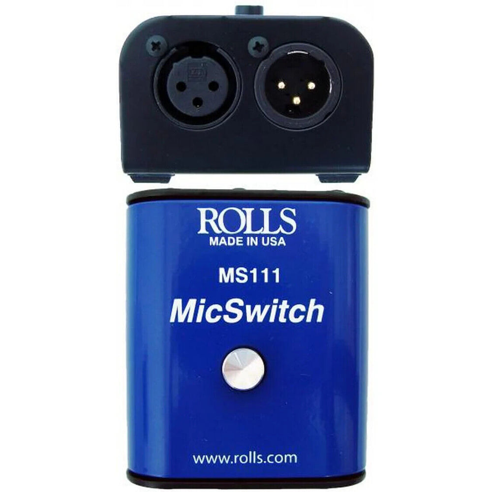 The ROLLS MS111 is a general purpose muting switch for microphones. The MS111 will pass phantom power, with no popping on the outputs. It is configurable to be Push to Mute or release to Mute by a second switch accessed on the side of the unit. The MS111 can have the mute switch configured to be Momentary (see manual), the switch is set to latching from the factory. The MS111 is only compatible with balanced signals.