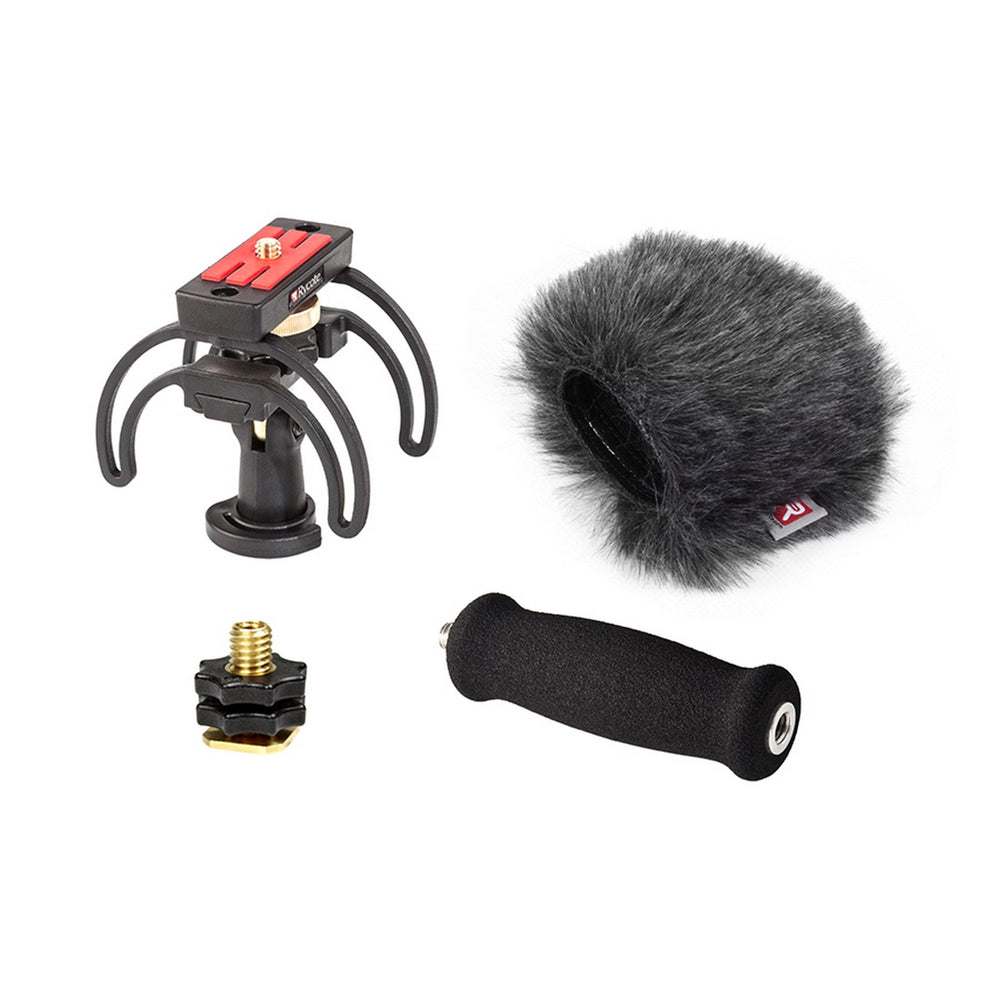 A combined Windshield and Suspension solution, the kit contains everything needed to protect a handheld digital recorder from outdoor wind noise, and also to isolate it from unwanted vibrations, whether from handling or stand-borne noise. It is aimed at journalists, film-makers, or anyone using a handheld digital recorder to make professional-quality audio recordings outdoors. It can be used location soundtracks or outside broadcast, or for simple audio podcasts or outdoor radio reporting.