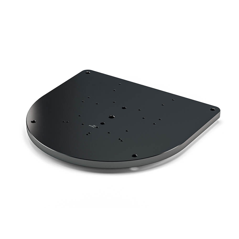 This plate has a series of different mounting patterns for PTZ’s of different brands that do not have the lower mounting holes centrally aligned. Can be fitted with OConnor standard ball bases and tiedowns (75mm, 100mm, and 150mm), all flat pedestal base types and Mitchell mounts. Works with any Sachtler Vinten or OConnor Tripod or pedestal.