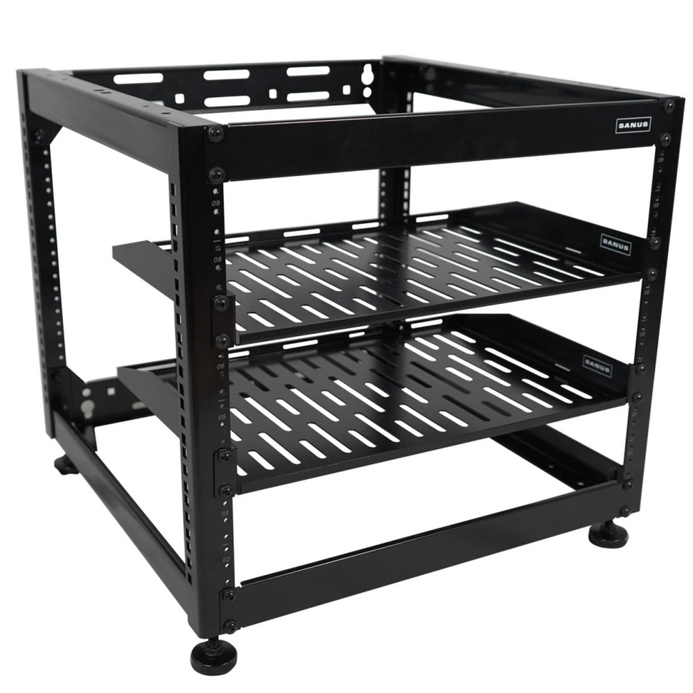 - We rigorously safety test every product we launch so you can feel confident your SANUS 10U AV Rack will perform. Features a 5-year warranty