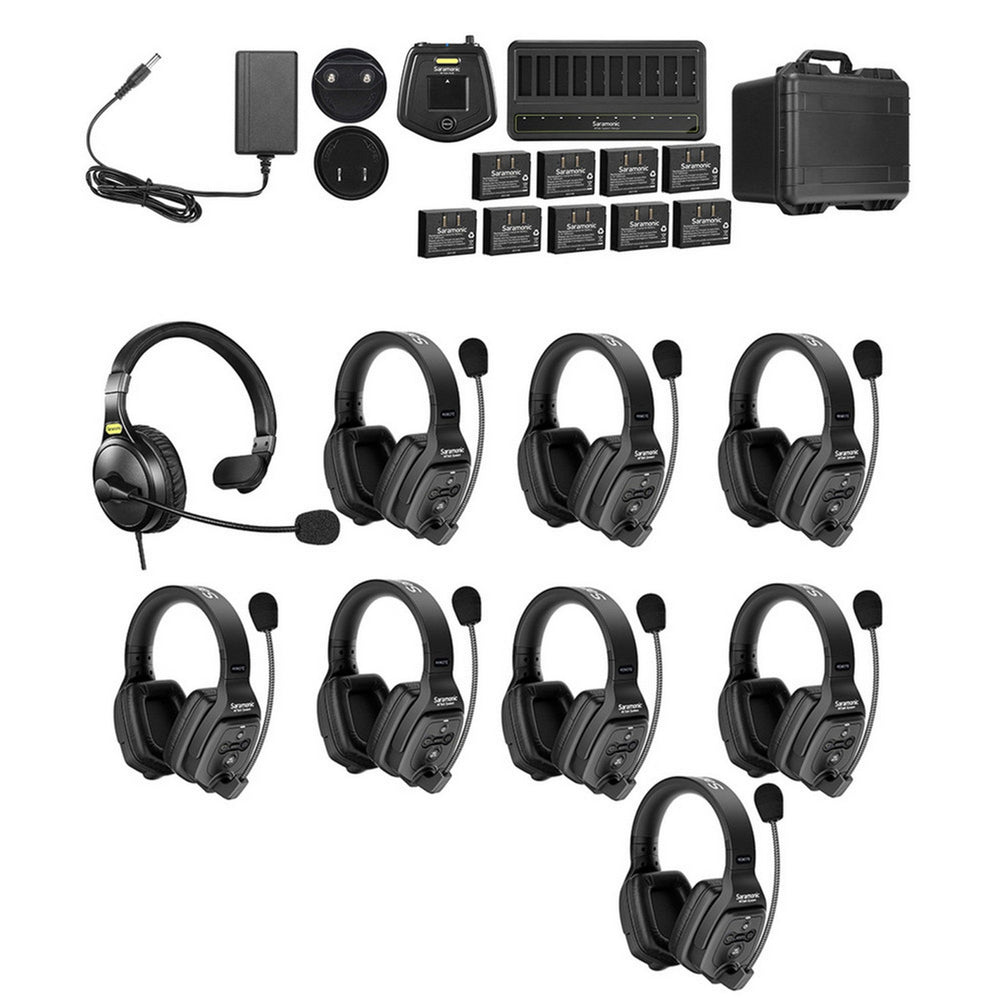 The Saramonic WiTalk wireless intercom systems provide a powerful, full-duplex communication solution for teams of various sizes. Offering models for 6, 7, 8, or 9 users, these systems are available with either single-ear or dual-ear headsets, giving you flexibility and comfort based on your needs. Each model operates within the 1.9 GHz frequency range, providing clear and reliable communication free from interference. Whether you're working on a film set, coordinating a live event, or managing a team on a production floor, these intercoms ensure that your team stays connected, no matter the environment.