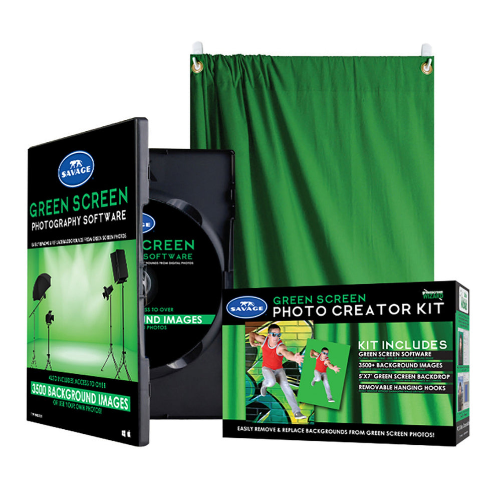 Using dynamic green screen technology and digital software, a simple photograph taken against a green screen cloth can be dropped into a locale or landmark from anywhere around the world. The Savage Green Screen Photo Creator Kit makes such photographic wizardry a snap with our easy-to-use Green Screen Wizard software, newly upgraded and now featuring 3,500 digital backgrounds, and a 5’ x 7’ professional-grade green screen backdrop. A great introduction to chroma key technology!