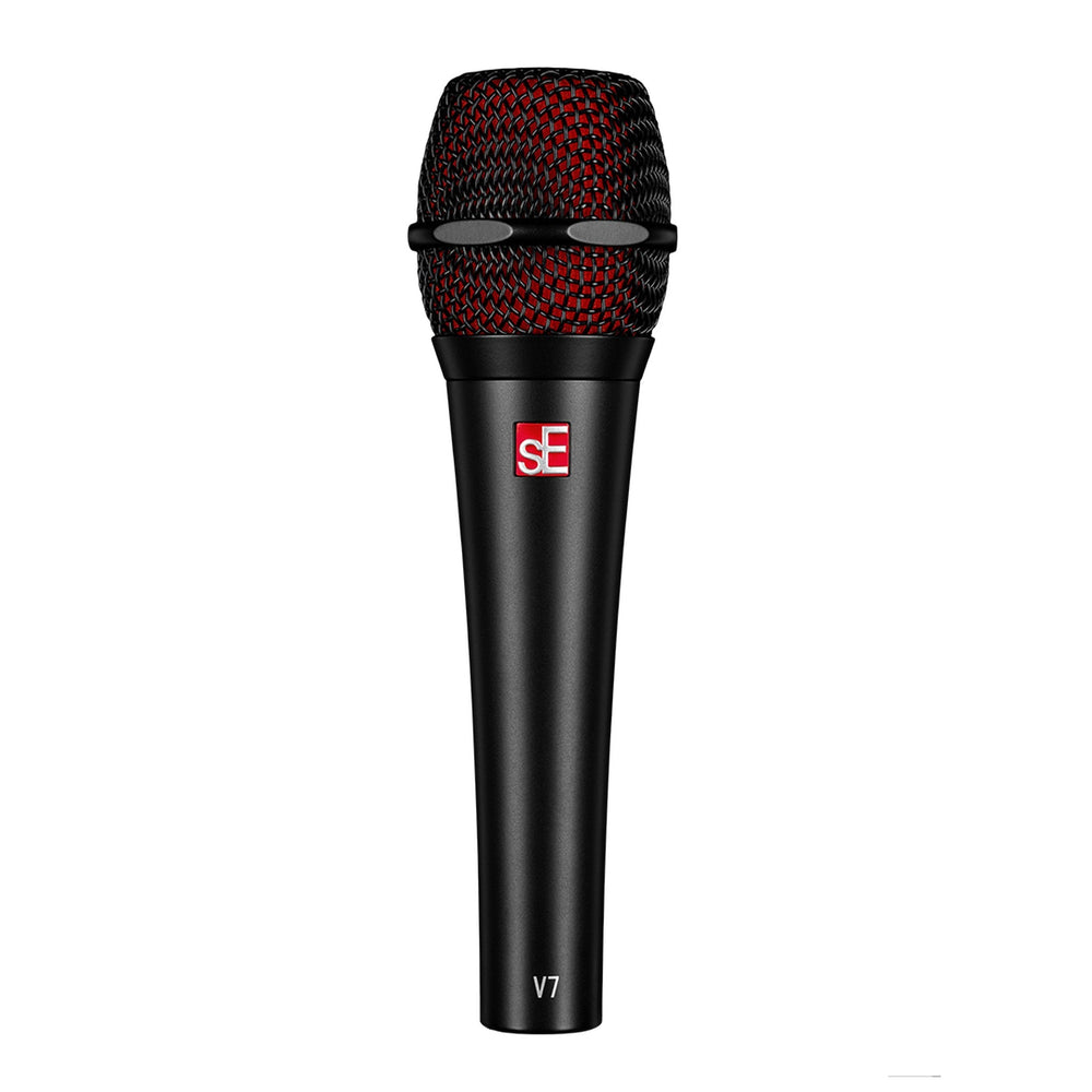 The sE Electronics V7 PTT is a premium dynamic handheld microphone designed for seamless talk-back, paging, and communication in live sound environments. Engineered with a noiseless Push-To-Talk (PTT) button, it ensures effortless operation while maintaining exceptional audio clarity. Its rugged construction, featuring an all-metal housing and beveled spring steel grille, is built to withstand rigorous use in professional settings.