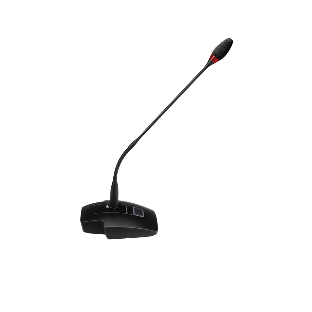 The robust MAT 153-S table stand provides a stable and reliable base for XLR-5 gooseneck microphones, ensuring your setup remains steady even during busy events. The user-friendly microphone button features a dual-color status display, providing immediate visual feedback on microphone activity. Complementing this remarkable set is its streamlined design and advanced RF shielding that guards against intermodulation from wireless devices, ensuring pure, uninterrupted audio output.
