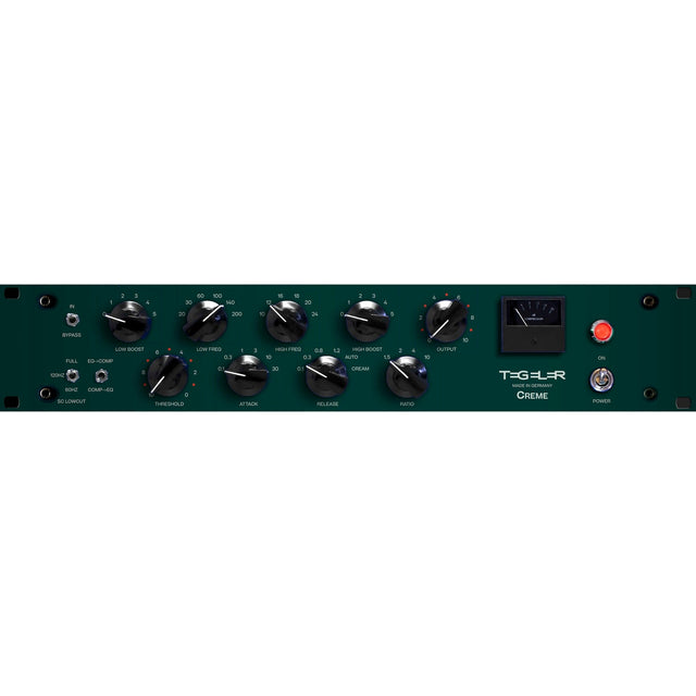 The Tegeler Audio Manufaktur Creme is a world-class bus compressor and mastering equalizer that combines classic analog design with modern high-fidelity performance. Built on a renowned passive EQ architecture inspired by the legendary Pultec principle, the Creme enhances both low and high frequency content with musical warmth and precision. Its unique approach lets engineers and producers add subtle tonal shaping and powerful compression in a single 19-inch rack unit, making it ideal for mix bus and mastering applications.