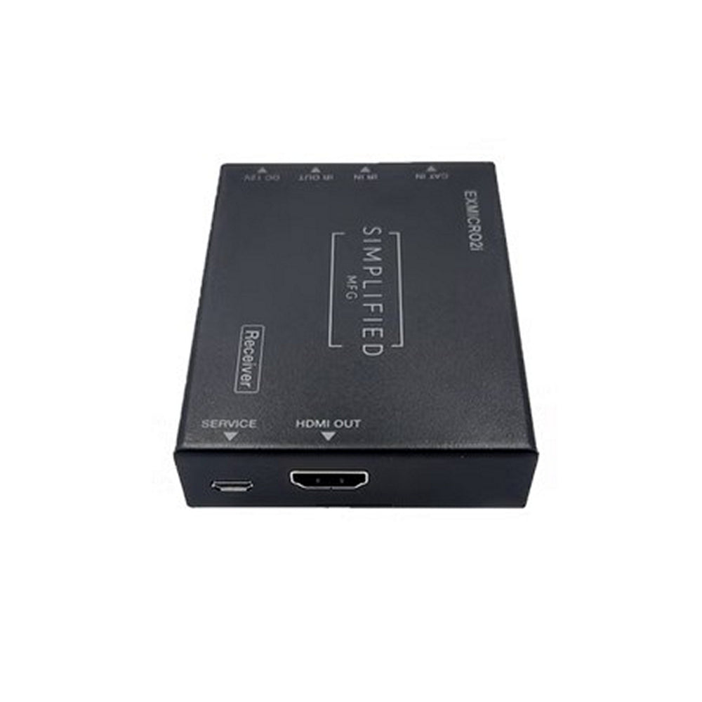 The SIMPLIFIED MFG EXMICRO2i is an advanced HDMI 2.0b extender system designed to transmit uncompressed 4K HDR video and multi-channel audio signals up to 50 meters (164 ft) over a single category cable. Utilizing efficient technology, it delivers full 18 Gbps HDMI bandwidth, supports HDR10+ and Dolby Vision, and features a local HDMI loop-out at the transmitter for convenience in commercial and residential AV installations.