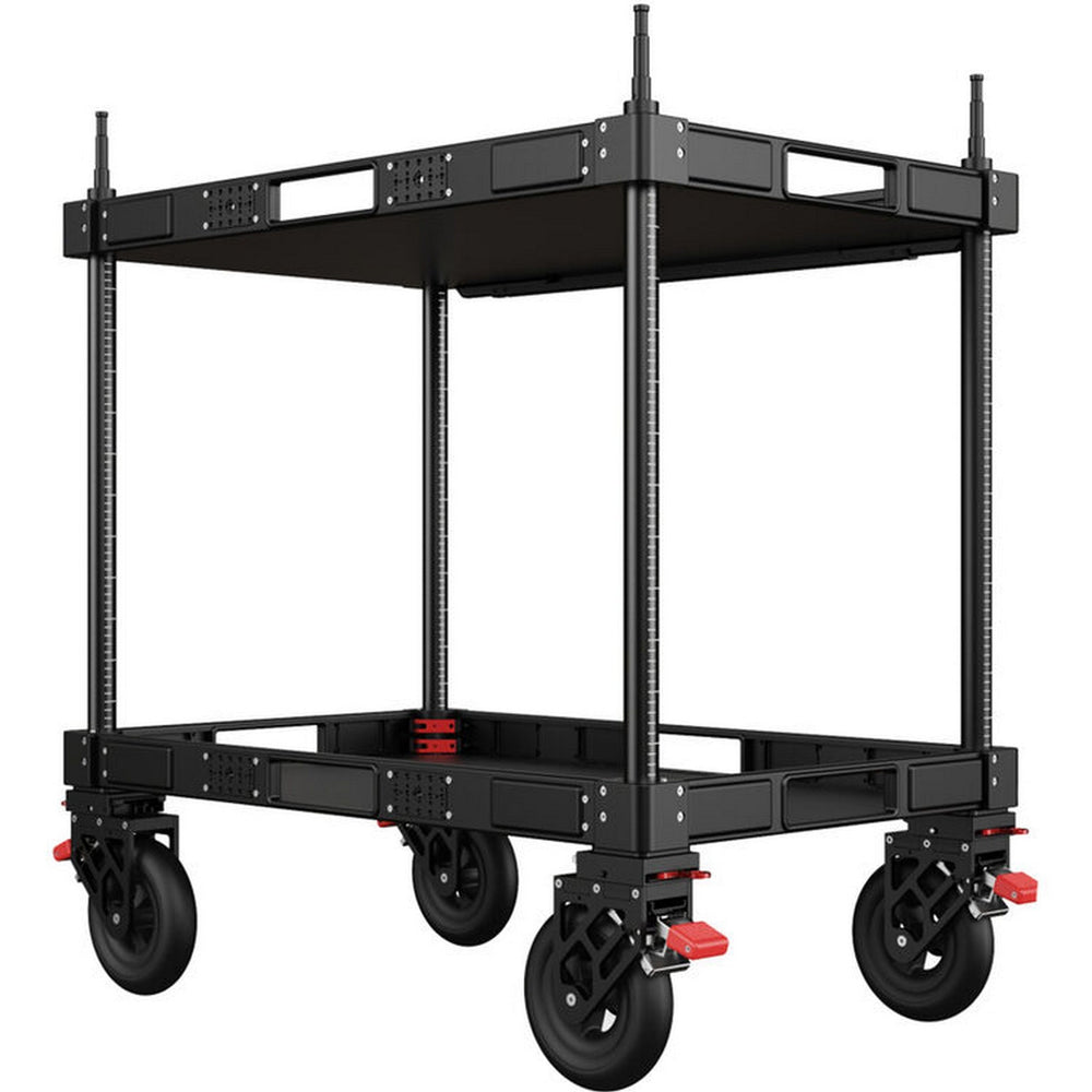 Designed for efficiency, the cart assembles or collapses in approximately three minutes with no tools required. Its airline-oversize-compliant folded height makes it ideal for travel, remote shoots, and compact storage, while lockable 8-inch casters ensure smooth mobility and secure positioning during operation.